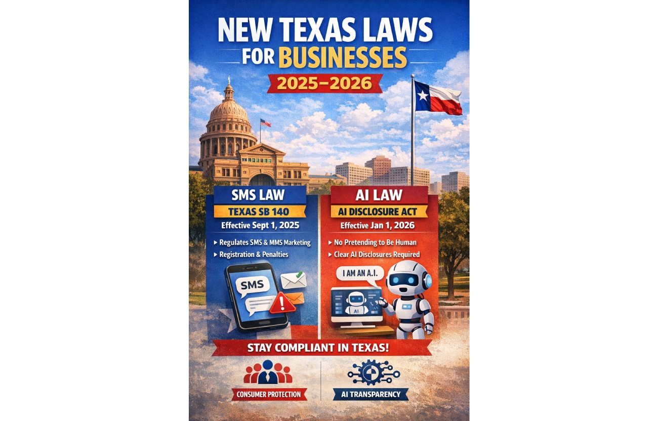 Texas is rolling out two major consumer protection laws that will affect businesses using text messaging (SMS) and artificial intelligence (AI) for communication and marketing. These laws are: Texas Senate Bill 140 (SB 140) – Effective September 1, 2025 Texas Responsible Artificial Intelligence Gov